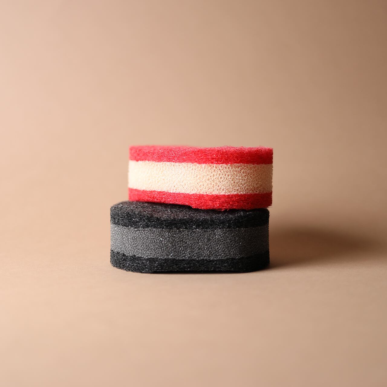 毎日たくさんの洗い物をする飲食店。私たちもコーヒーのケトルを持つ以上に手にすることが多いスポンジ。洗いやすさや耐久性はもちろんのこと、使い続けたいと思えるコロンとしたフォルムとカラーも大事なポイントです。